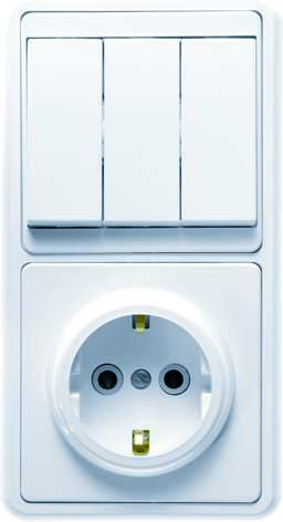 Блок БКВР-033 Бэлла (3-кл. выкл. + розетка с заземл.) бел. Кунцево 5843