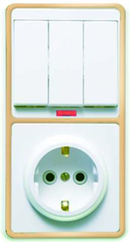 Блок БКВР-054 Бэлла (3-кл. выкл. с подсветкой + розетка с заземл.) зол. Кунцево 5846