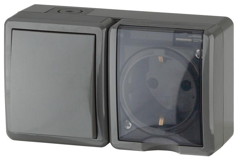 Блок ОП розетка+выключатель 11-7401-03 16АХ(10AX)-250В IP54 Эксперт сер. ЭРА Б0020734