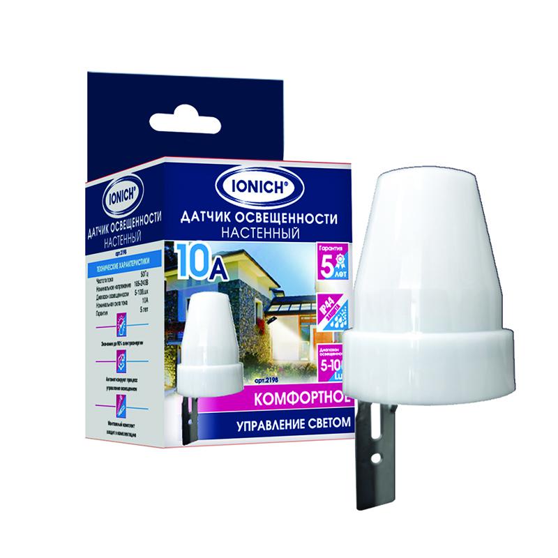 Датчик освещенности настенный 10А 5-100 Lux бел. IONICH 2198