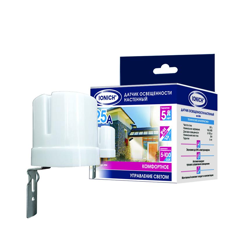 Датчик освещенности настенный 25А 5-100 Lux бел. IONICH 2204