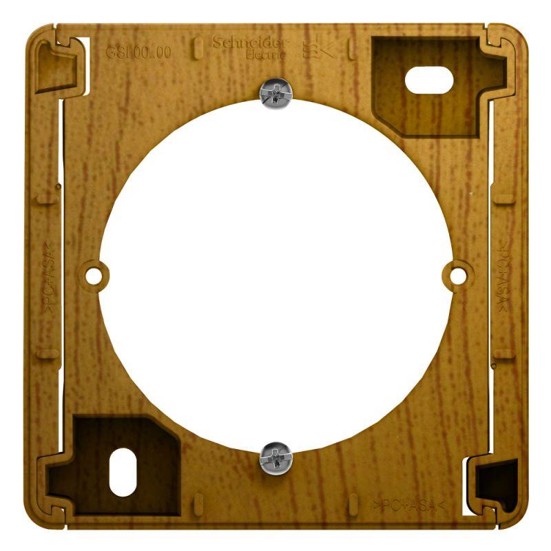 Коробка Systeme Electric (ранее Schneider Electric) серии Glossa (цвет дерево дуб) наружного монтажа. - Позволяет установить любую функцию скрытого монтажа на стену (как изделие открытого монтажа). - Выполнена из материала PС+ASA, стойкого к УФ-излучению и появлению царапин.