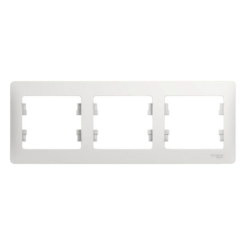 Рамка Systeme Electric (ранее Schneider Electric) серии Glossa (цвет белый) трёхместная. - Устанавливается в горизонтальном положении. - Выполнена из материала PС+ASA, стойкого к УФ-излучению и появлению царапин. - Позволяет гармонично вписать электроустановочное изделие в интерьер помещения.