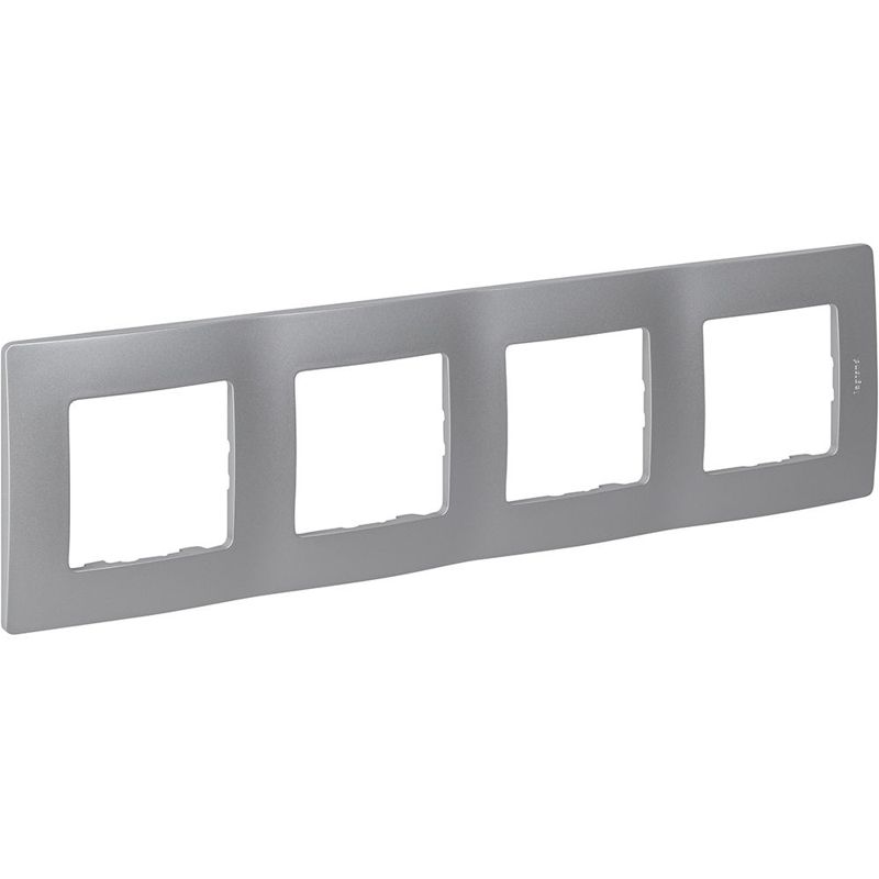 Рамка для розеток и выключателей Legrand Etika, 4 поста, цвет алюминий. Особенности: - Матовая. Изготовлена из высококачественного АБС пластика-материал не поддерживает горение, стоек к выгоранию и загрязнениям. - Крепление рамки на многоуровневых защёлках. Способ крепления позволяет скрывать незначительные неровности стен.