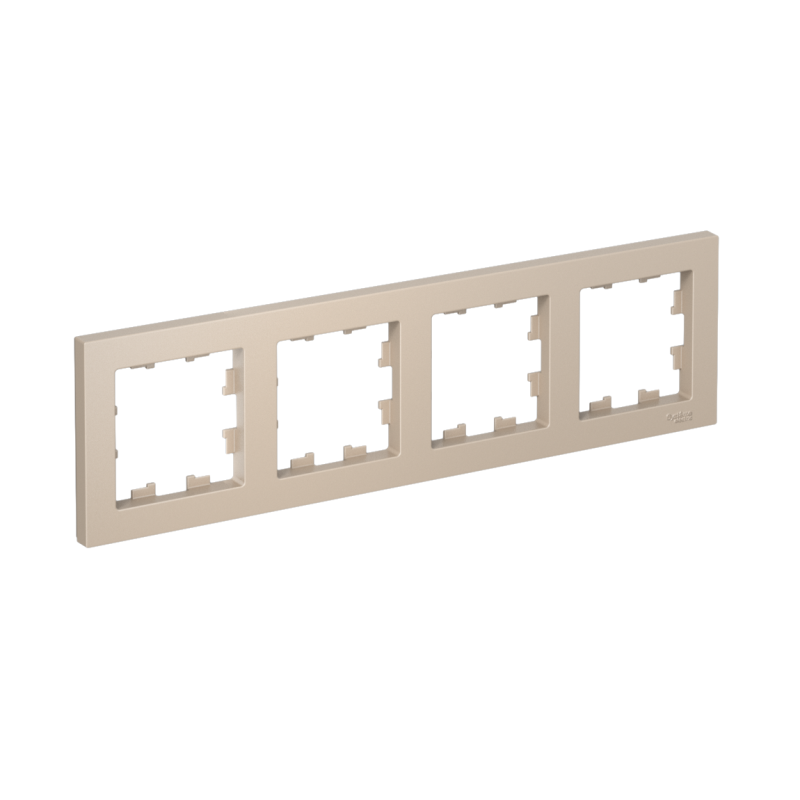 Рамка Systeme Electric (ранее Schneider Electric) серии AtlasDesign в цвете ПЕСОЧНЫЙ четырёхместная. - Устанавливается в вертикальном и горизонтальном положениях. - Лицевые детали из качественного ABS-пластика, устойчивого к царапинам и УФ-излучению. - Позволяет гармонично вписать электроустановочное изделие в интерьер помещения.