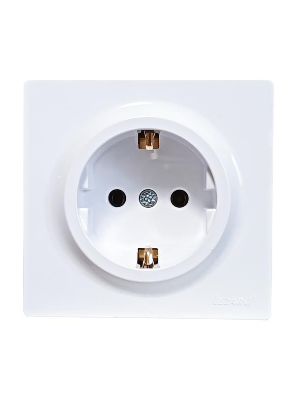 Розетка 1-м ОП LETO с заземл. ПБТ бел. LEZARD 752-0200-122B