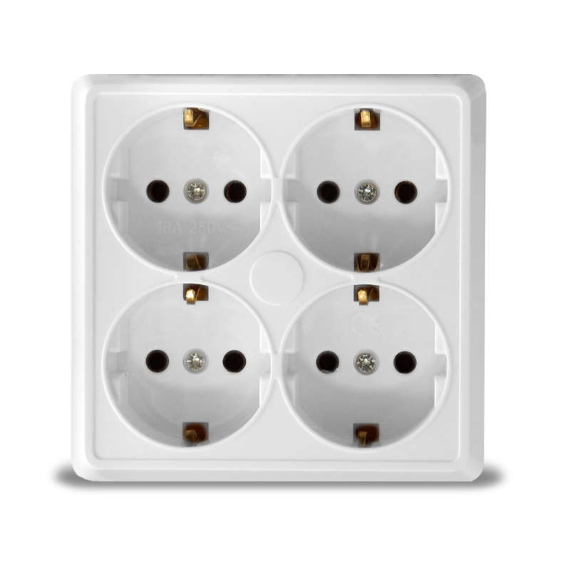 Розетка 4-м ОП Олимп с заземл. квадрат бел. UNIVersal 1165