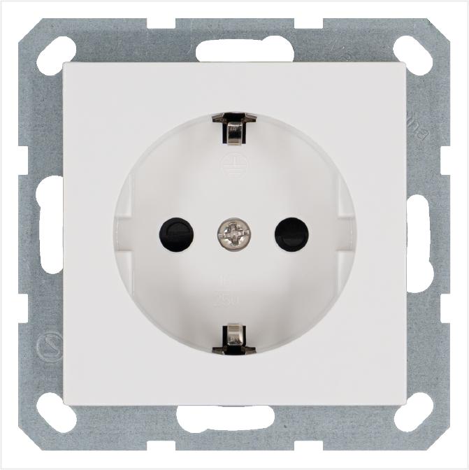 Розетка 1-м Shuko 16А IP20 с заземл. защ. шторки механизм бел. глянцевый Jasmart G5501W
