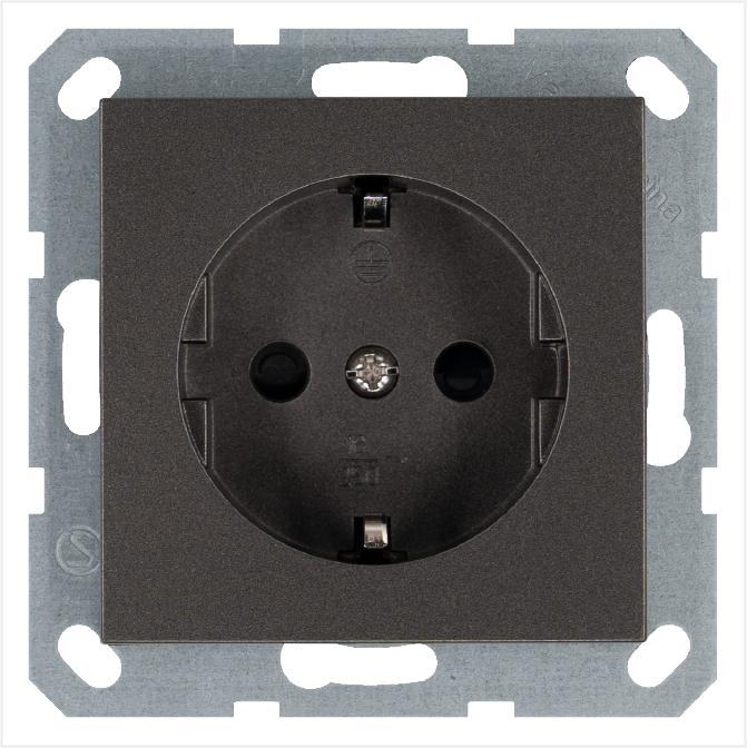 Розетка 1-м Shuko 16А IP20 с заземл. защ. шторки механизм мокко Jasmart G5501Z