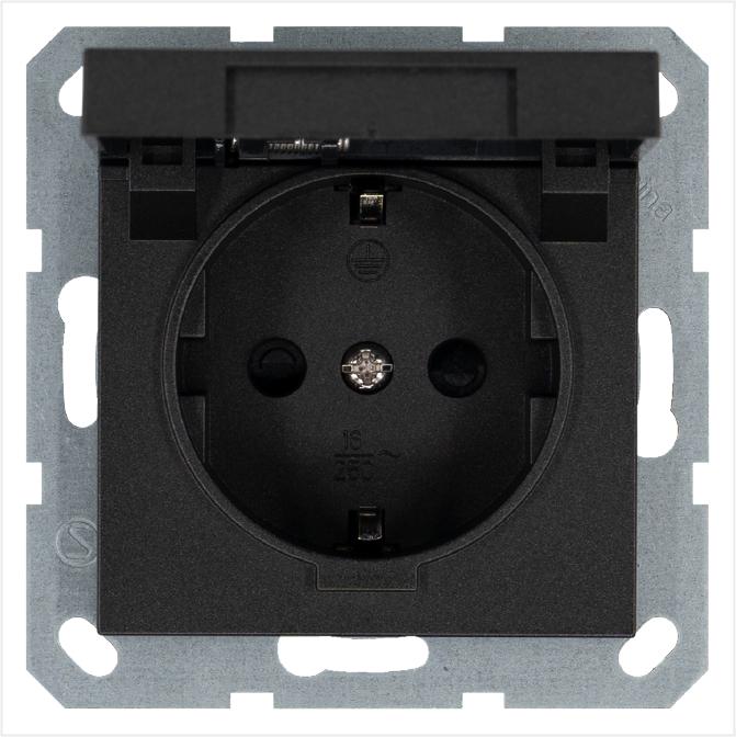 Розетка 1-м Shuko 16А IP20 с заземл. защ. шторки с крышкой механизм антрацит Jasmart G5505B