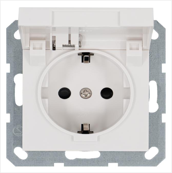 Розетка 1-м Shuko 16А IP20 с заземл. защ. шторки с крышкой механизм бел. глянцевый Jasmart G5505W