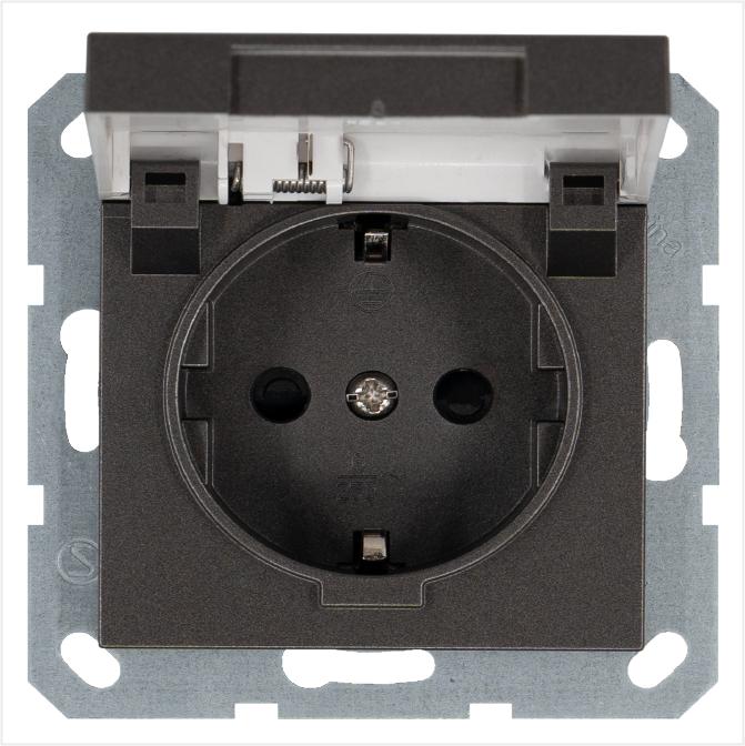 Розетка 1-м Shuko 16А IP20 с заземл. защ. шторки с крышкой механизм мокко Jasmart G5505Z