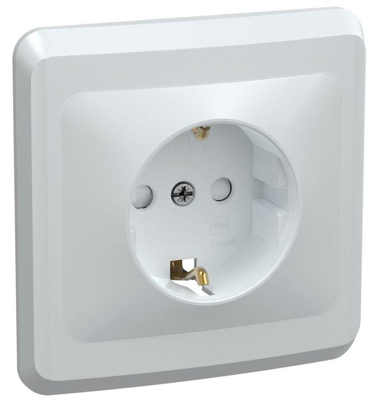 Розетка 1-м СП Вега РСш10-3-ВБ с заземл. контактом и защ. штор 16А бел. GENERICA ERV14-K01-16-DM