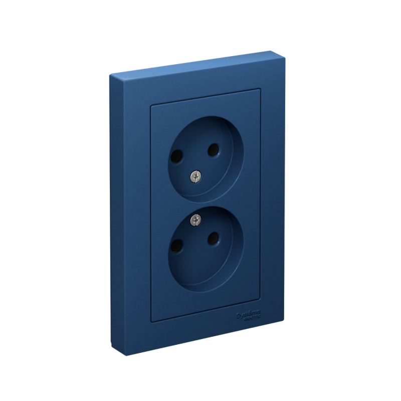 Розетка двойная Systeme Electric (ранее Schneider Electric) серии AtlasDesign (в сборе, цвет аквамарин) без заземления и без шторок подходит для сетей 250 В, на ток 16 А. - Лицевые детали из качественного ABS-пластика, устойчивого к царапинам и УФ-излучению. - Двойная розетка позволяет подключить два устройства в одном месте. - Изделие поставляется в комплекте с рамкой того же цвета.
