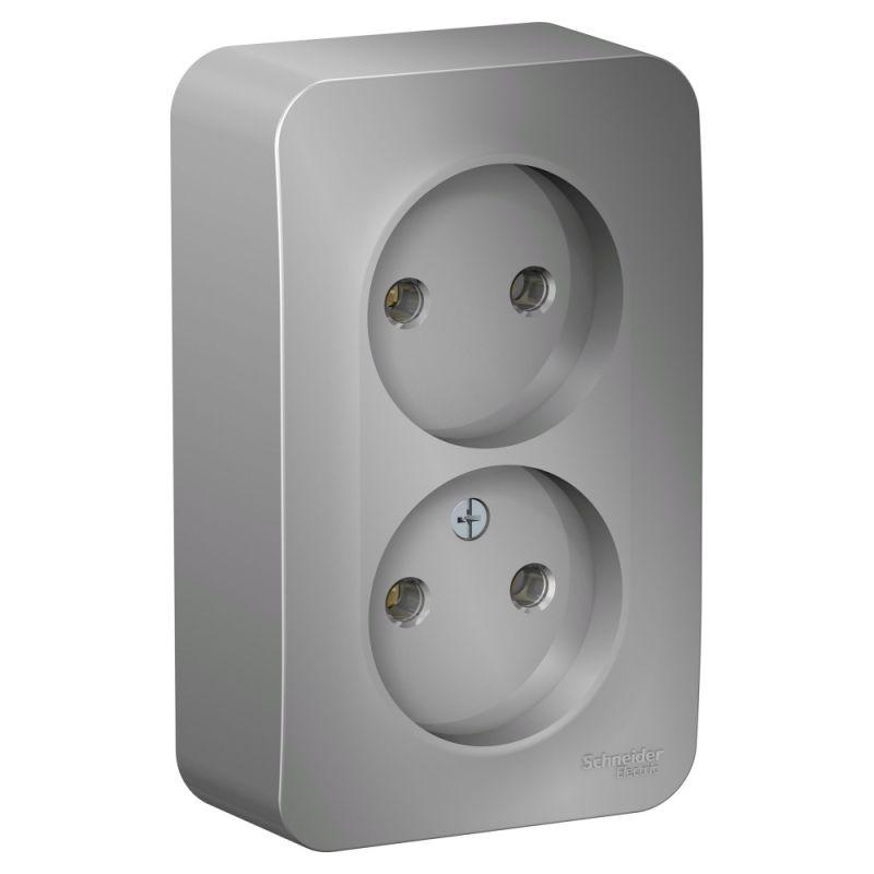 Розетка Systeme Electric (ранее Schneider Electric) BLANCA (алюминий, открытой установки) двухместная, без шторок и заземления, с изолирующей пластиной предназначена для сетей до 250В, на ток до 16А. Двухместная розетка позволяет подключить два устройства в одном месте. Она изготовлена из ABS-пластика, проста в установке и удобна в применении.