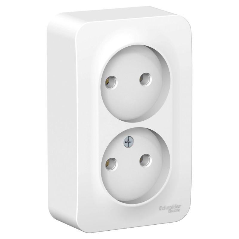 Розетка Systeme Electric (ранее Schneider Electric) BLANCA (белый, открытой установки) двухместная, без шторок и заземления, с изолирующей пластиной предназначена для сетей до 250В, на ток до 16А. Двухместная розетка позволяет подключить два устройства в одном месте. Она изготовлена из ABS-пластика, проста в установке и удобна в применении.