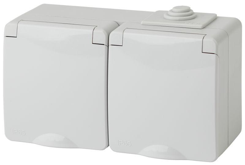 Розетка 2-м ОП Эра Эксперт 11-2604-03 16А IP65 горизонт. 250В 2х2P+E защ. шторки сер. Эра Б0035992