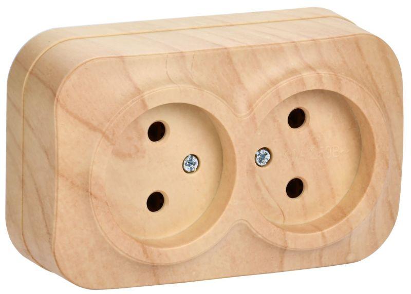 Розетка 2-м ОП GLORY РС22-2-ХС 10А без заземл. сосна IEK ERH20-K34-10