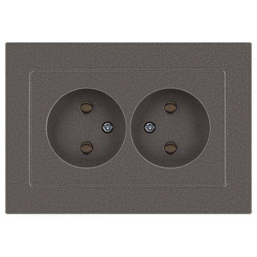 Розетка двойная без заземления серии Intro Accent скрытой установки цвет титан 6-204-09. Номинальные характеристики 16А 250В. Выполнена из негорючего термопласта, оснащена винтовыми клеммами. Парные клеммы обеспечивают соединение шлейфом. Монтаж в подрозетник производится и на лапки, и на винты.
