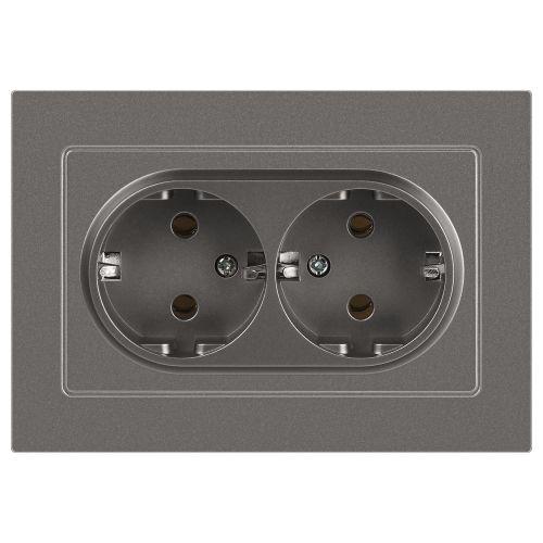 Розетка 2-м СП Accent 6-205-09 16А IP20 250В 2P+E Schuko AL/CU титан Intro Б0063500