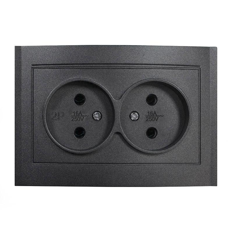 Розетка 2-м СП Бриллиант 16А IP20 без заземл. в сборе графит Universal 7947519-Gr