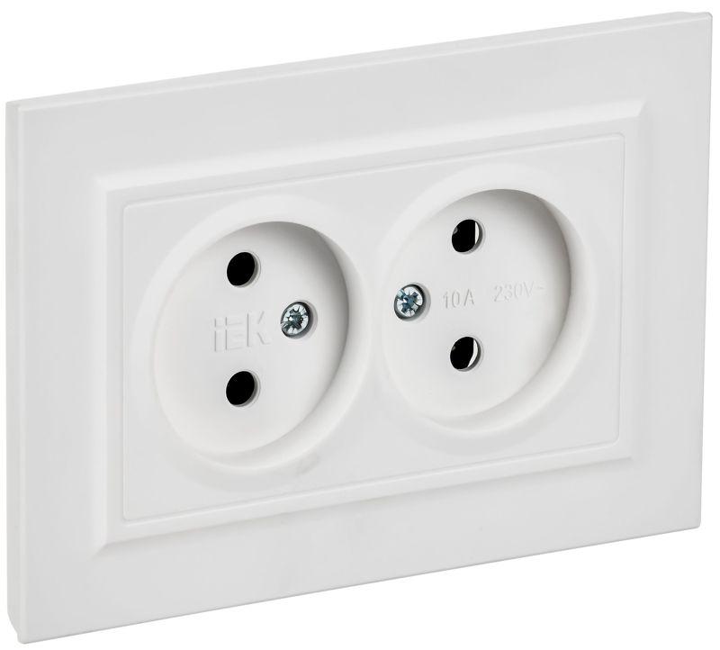Розетка 2-м СП BRITE РС12-2-БрАБ 10А в сборе без заземл. без защ. шторок арктич. бел. IEK BR-R20-10-K91-F