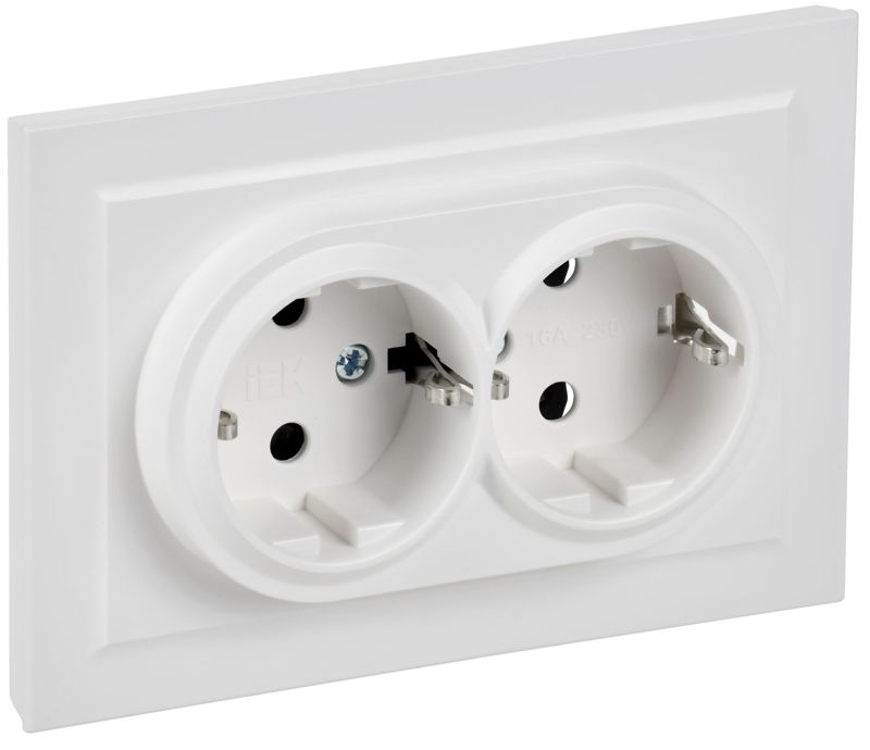 Розетка 2-м СП BRITE РС12-3-БрАБ 16А в сборе с заземл. без защ. шторок арктич. бел. IEK BR-R21-16-K91-F