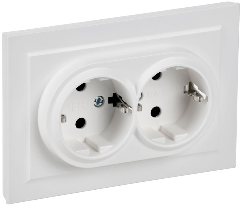 Розетка 2-м СП BRITE РСш12-3-БрАБ 16А в сборе с заземл. защ. шторки арктич. бел. IEK BR-R24-16-K91-F