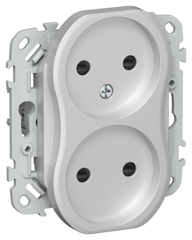 Розетка 2-м СП FLITE РСш02-0-ФлА 10А без заземл. с защ. шторками механизм алюм. IEK FI-R23-10-K47