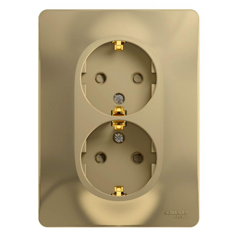 Розетка двойная Systeme Electric (ранее Schneider Electric) серии Glossa (в сборе, цвет титан) с заземлением и шторками подходит для сетей 250 В, на ток 16 А. - Заземляющий контакт обеспечивает дополнительную защиту от удара электрическим током. При наличии заземления электрический потенциал уходит в землю, защищая человека. - Выполнен из материала PС+ASA, стойкого к УФ-излучению и появлению царапин. - Двойная розетка позволяет подключить два устройства в одном месте.