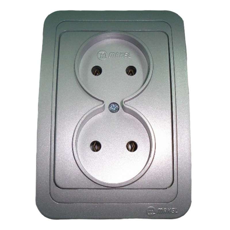 Розетка 2-м СП Mimoza 16А IP20 без заземл. серебр./серебр. Makel 23417