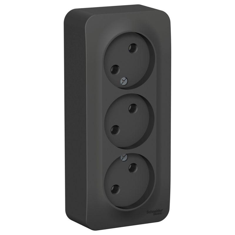 Розетка 3-м ОП Blanca 16А IP20 250В без заземл. без защ. шторок с изолир. пластиной антрацит SE BLNRA000316
