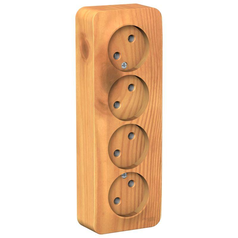 Розетка Systeme Electric (ранее Schneider Electric) BLANCA (ясень, открытой установки) четырехместная, без шторок и заземления, с изолирующей пластиной предназначена для сетей до 250В, на ток до 16А. четырехместная розетка позволяет подключить четыре устройства в одном месте. Изделия цвета Ясень обладают уникальным рисунком, напоминающим древесный сруб. Она изготовлена из ABS-пластика, проста в установке и удобна в применении.