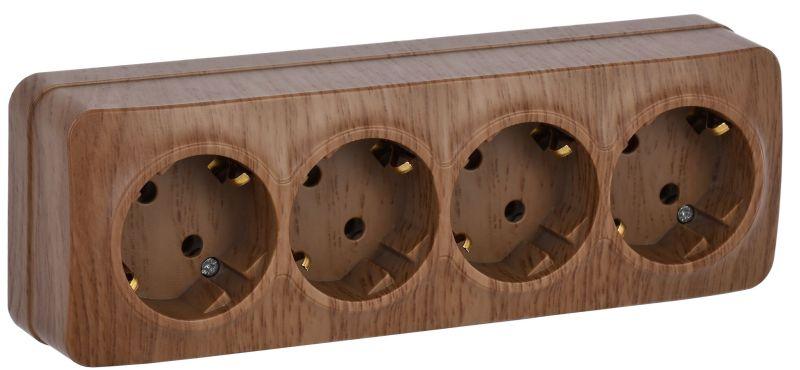 Розетка 4-м ОП GLORY РС24-3-ХД 16А с заземл. дуб IEK ERH41-K24-16