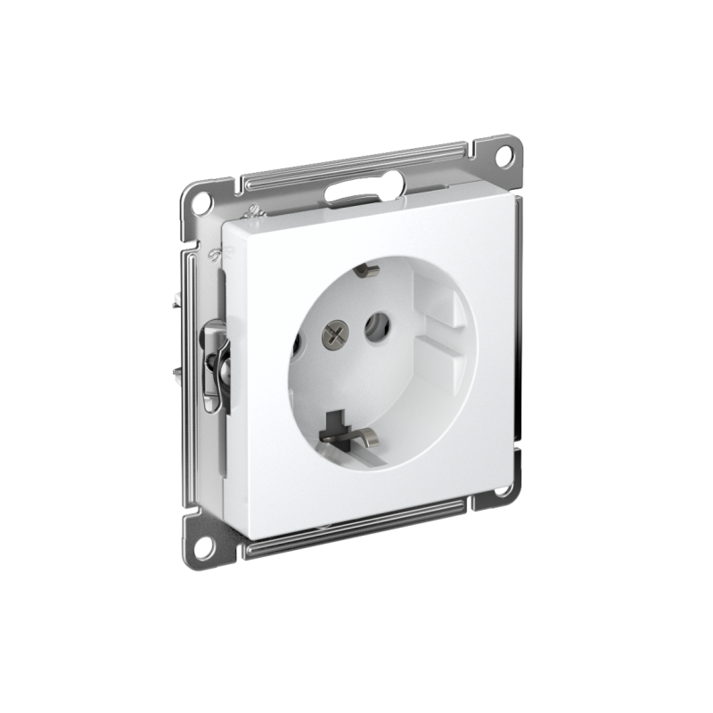 Механизм с быстрозажимными клеммами Systeme Electric (ранее Schneider Electric) серии AtlasDesign в цвете белый розетки с заземления без шторок подходит для сетей 250 В, на ток 16 А. С помощью новых быстрозажимных клемм монтаж розеток и выключателей стал намного быстрее. Теперь подключение не требует использования отвертки. Пластик с ионами серебра в белом цвете обеспечивает антибактериальный эффект. Лицевые детали из качественного ABS-пластика, устойчивого к царапинам и УФ-излучению.