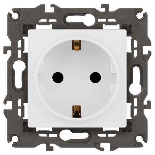 Розетка с заземлением и шторками серии Эра Elegance цвет белый матовый 14-2102-01М. Характеристики 16А 250В. Оснащена автоматическими клеммами для надёжной фиксации жил кабеля в механизме. Рамки приобретаются отдельно.