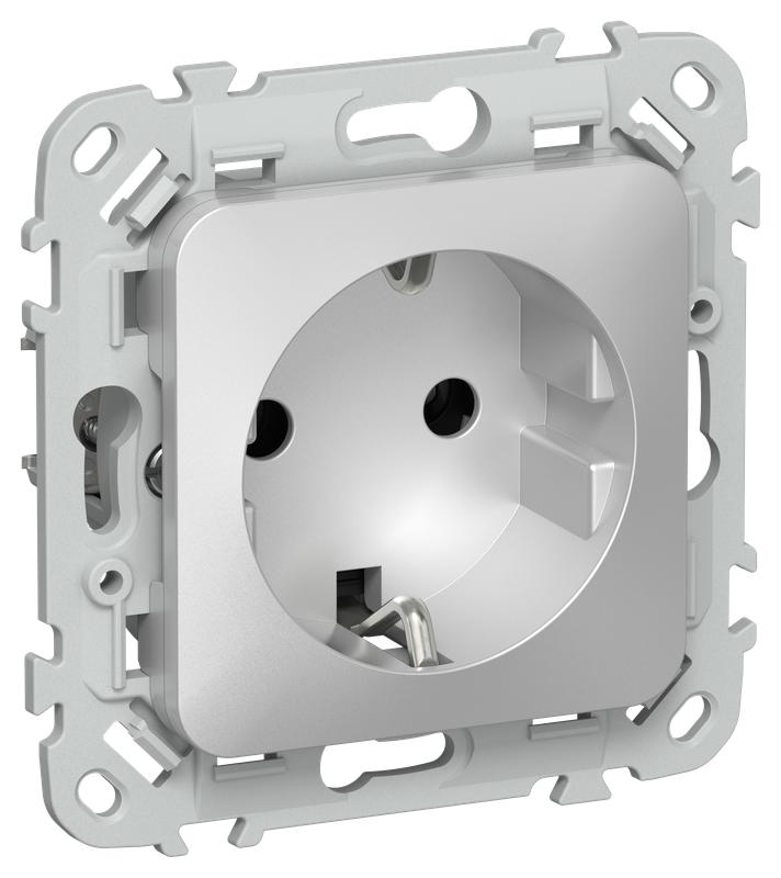Розетка СП FLITE РС11-1-ФлА 16А с заземл. без защ. шторок безвинтовое крепление механизм алюм. IEK FI-R11-16-1-K47