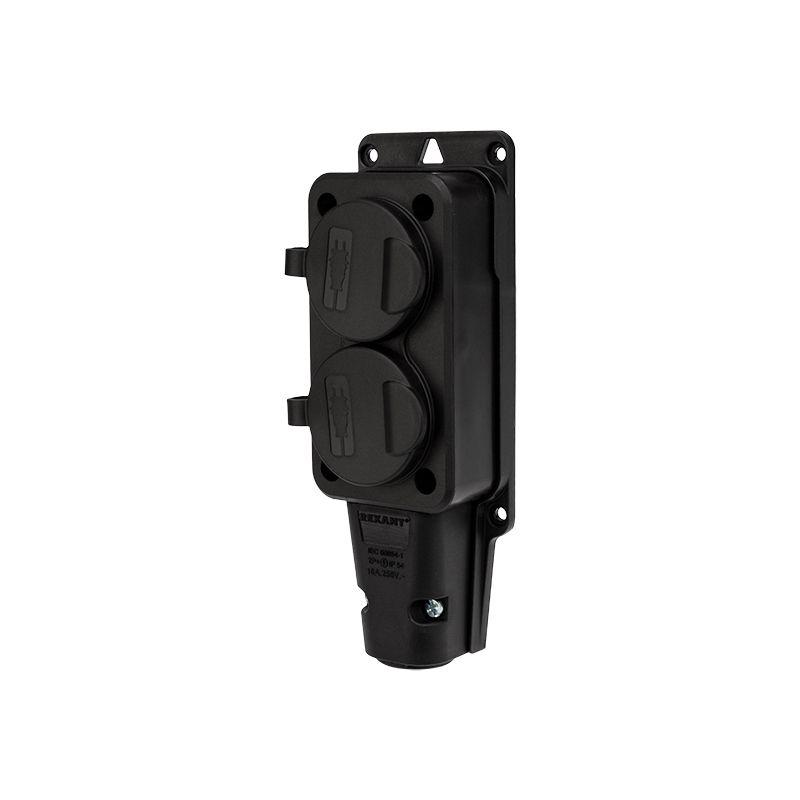 Розетка штепсельная двухместная влагозащ. с/з 16А IP54 каучук Rexant 111-112