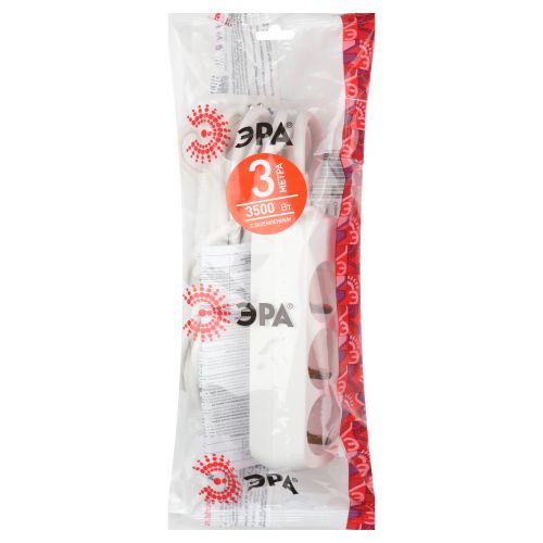 Удлинитель электрический Эра U-3e-3m с заземлением, ПВС, 3x1мм2, 3 розетки, 3м. Рассчитан на максимальную мощность 16А/3500 Вт. Удлинитель Эра станет Вашим надежным помощником, если Ваши любимые электроприборы находятся далеко от розеток. Провод в удлинителях Эра сделан из 100% меди, что делает его абсолютно пожаробезопасным. Корпус выполнен из ударопрочного и негорючего пластика (полипропилен). В моделях с заземлением у вилки есть кольцо для удобного извлечения из розетки. Модель удлинителя на 16А позволяет подключить мощные бытовые приборы общей нагрузкой до 3500Вт. Не бойтесь включить чайник, обогреватель, микроволновку или другие электроприборы. Толстый провод удлинителя Эра гарантирует полную безопасность. Дизайн удлинителя разработан в России командой Эра Style.