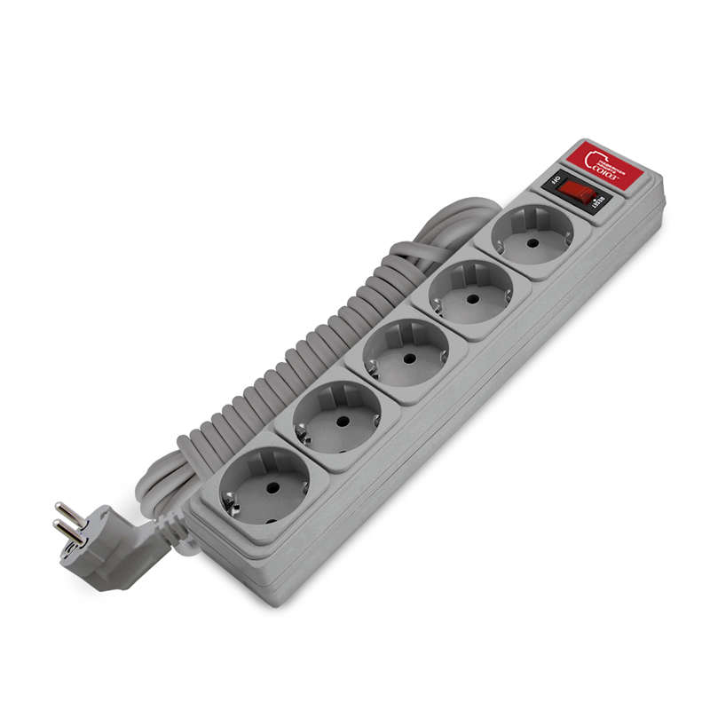 Удлинитель с сетевым фильтром 5х5м 10А IP21 ПВС 3х0.75 сер. Союз 1330