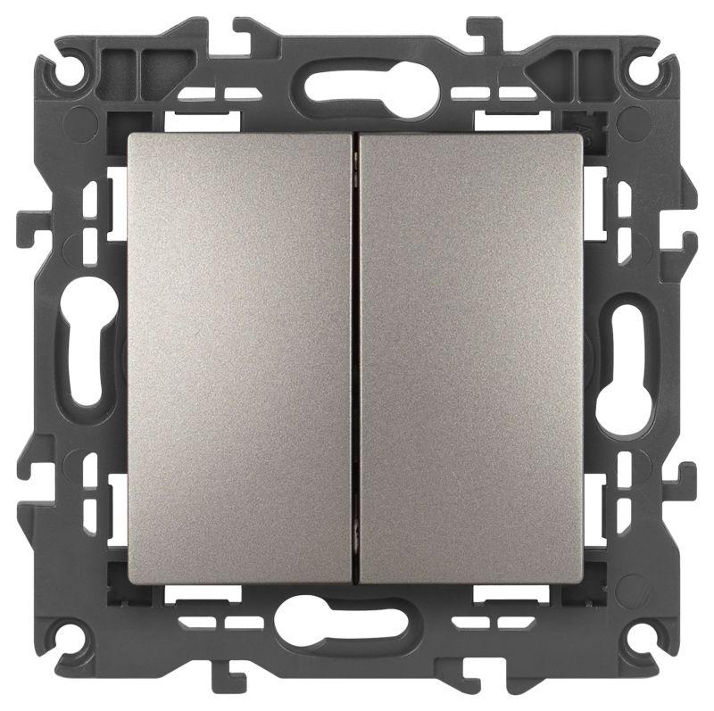 Переключатель 2-клавишный проходной серии Эра Elegance цвет титан 14-1106-16. Характеристики 10А 250В. Оснащён автоматическими клеммами для надёжной фиксации жил кабеля в механизме. Рамки приобретаются отдельно.