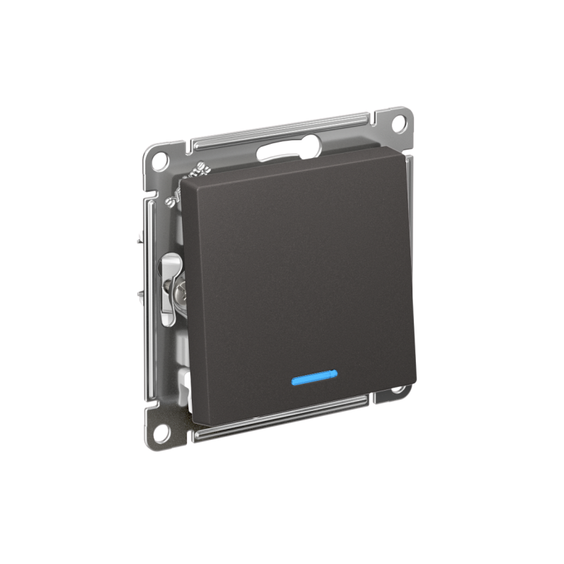 Механизм выключателя 1-клавишного с подсветкой Systeme Electric (ранее Schneider Electric) серии AtlasDesign в цвете БАЗАЛЬТ подходит для сетей 250 В, на ток 10 А. - Благодаря светодиодной подсветке синего цвета изделие легко найти в темноте. - Лицевые детали из качественного ABS-пластика, устойчивого к царапинам и УФ-излучению. - Усиленные прямые монтажные лапки для лучшей фиксации механизма в монтажной коробке.