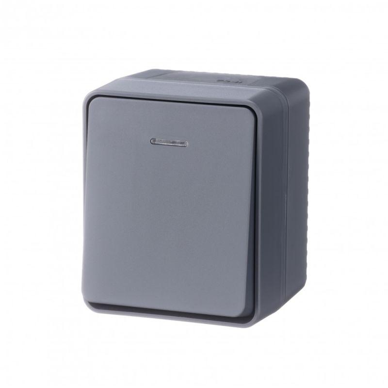 Выключатель 1-клавишный с подсветкой для открытого монтажа. Степень защиты IP:54, Степень защиты IK: IK08. Продукция AtlasDesign Profi54 созданы специально для тех мест, где требуется повышенная защита от влаги и пыли. Уютная веранда в загородном доме, уличное кафе, любимый гараж или мастерская – выключатели и розетки будут обеспечивать надежную защиту и радовать глаз современным дизайном. Элегантный цвет антрацит гармонично впишется в любую обстановку.