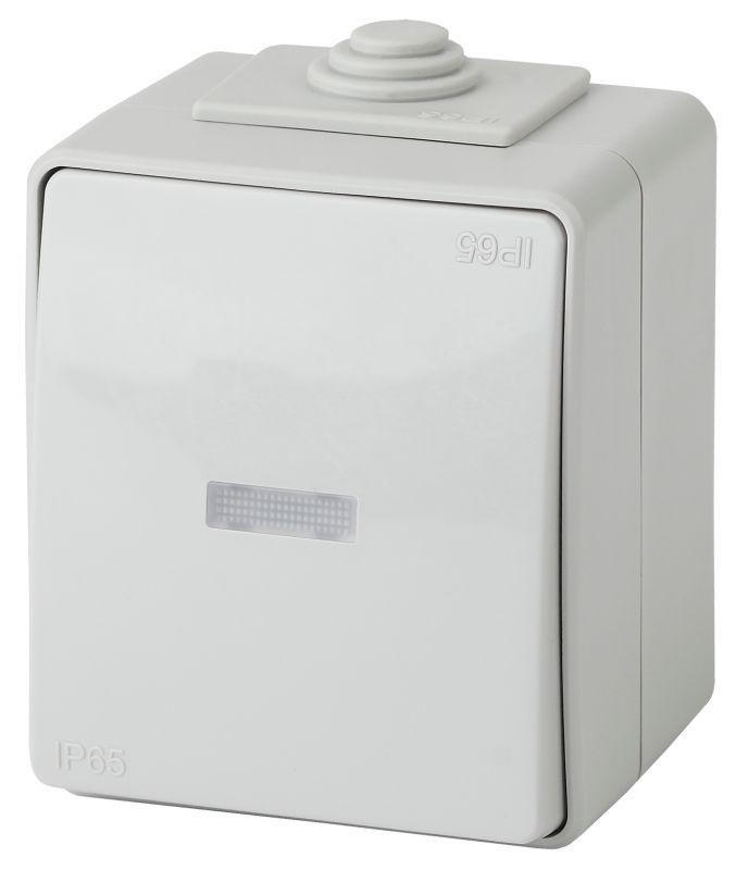 Выключатель влагозащищённый 1-клавишный с подсветкой серии Эра Эксперт накладн IP65 цвет серый 11-1602-03. Номинальные характеристики 10А 250В. Выполнен из качественного поликарбоната, оснащён уникальными винтовыми клеммами ЭКСПЕРТ для максимально качественного зажима кабеля в механизме.