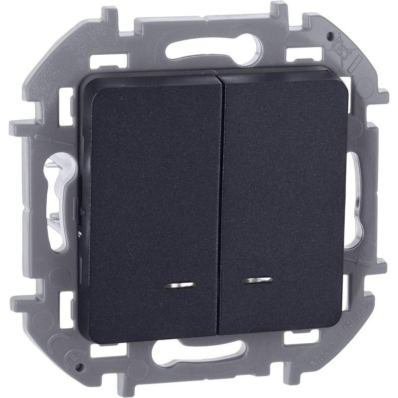 Выключатель 2-кл. Inspiria 10А IP20 250В 10AX с подсветкой/индикацией механизм антрацит IEK 673633