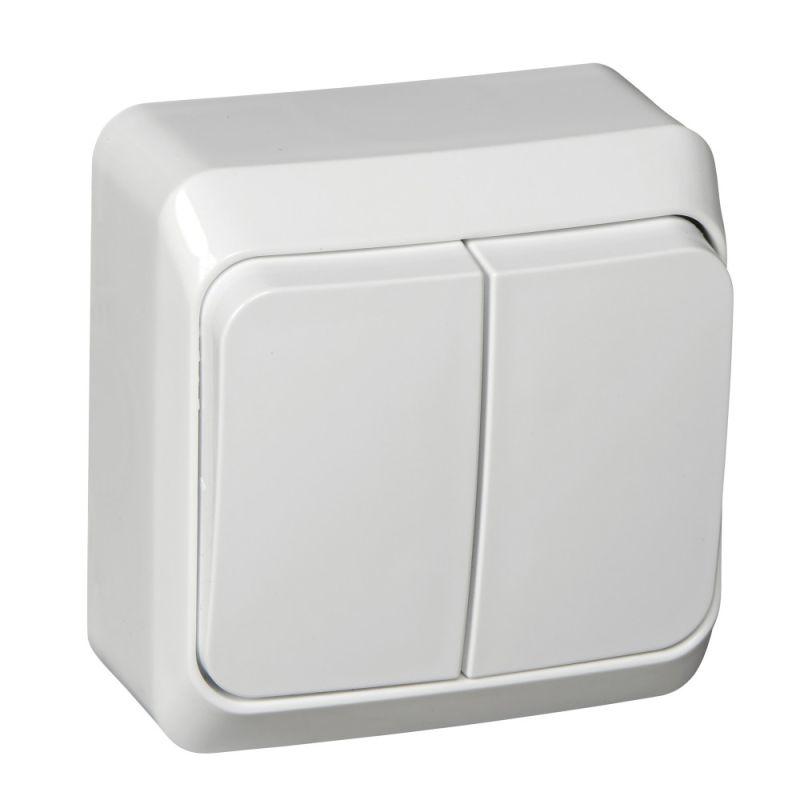 Выключатель Systeme Electric (ранее Schneider Electric) ЭТЮД (белый, открытой установки) двухклавишный предназначен для применения в сетях до 250В, на ток до 10А. Наличие подсветки делает его легко находимым при отсутствии освещения. Две клавиши позволяют управлять двумя источниками света с одной точки. Сделано в России.