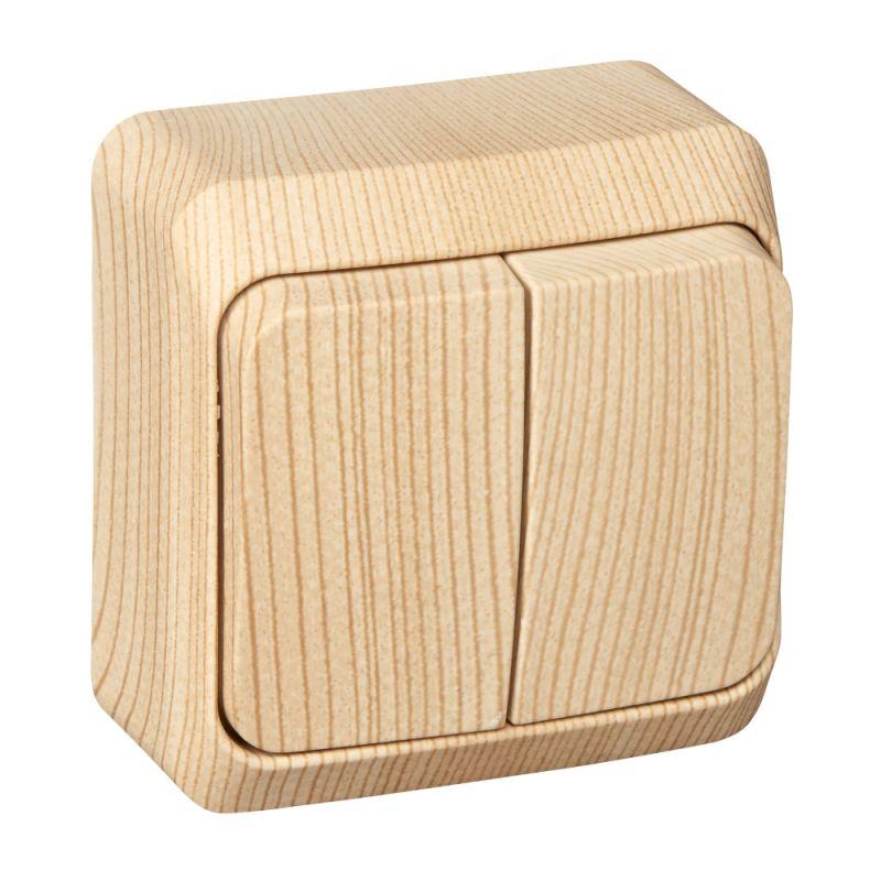 Выключатель 2-кл. ОП Этюд Дача 10А IP20 сосна SE BA10-002D