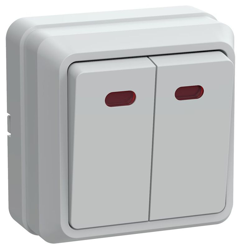 Выключатель 2-кл. ОП Октава 10А IP20 ВС20-2-1-ОБ с индикацией бел. GENERICA EVO21-K01-10-DC