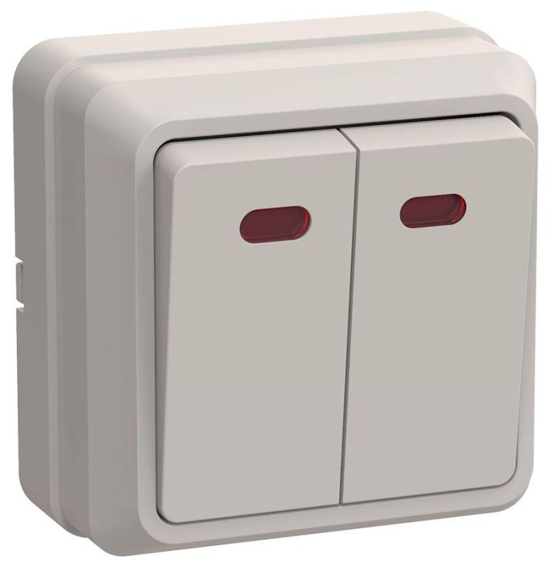 Выключатель 2-кл. ОП Октава 10А IP20 ВС20-2-1-ОКм с индикацией крем. GENERICA EVO21-K33-10-DC