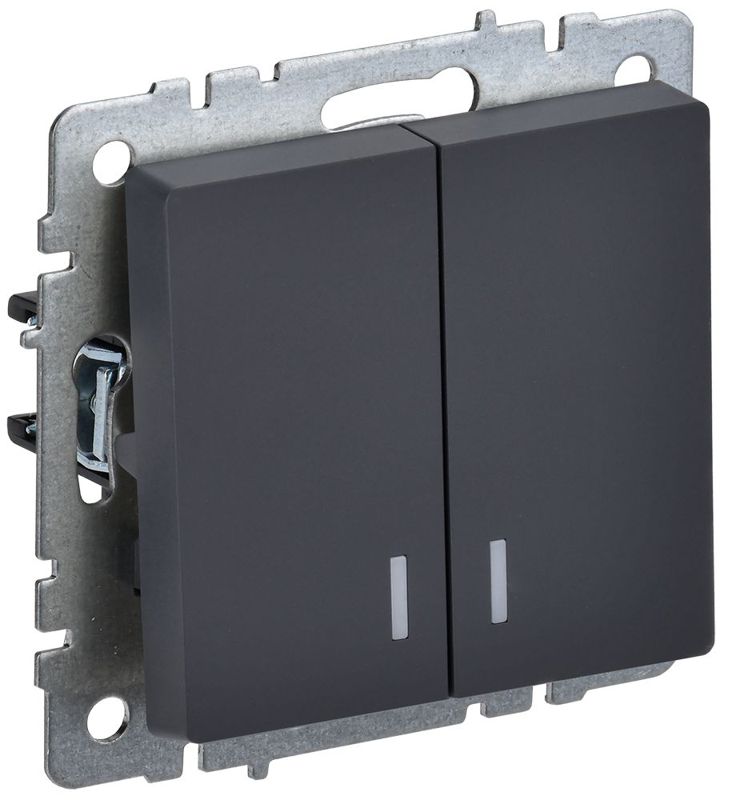 Выключатель 2-кл. СП BRITE ВС10-2-1-БрГ 10А с индик. механизм графит IEK BR-V20-1-10-K53